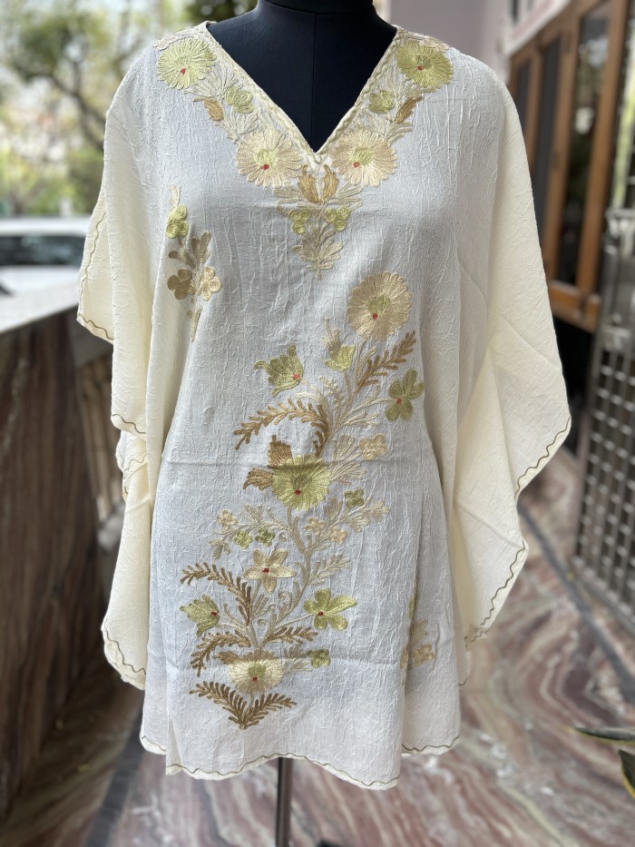 Off white Kaftan with Brown Floral Embroidery | Elegant Summer Style