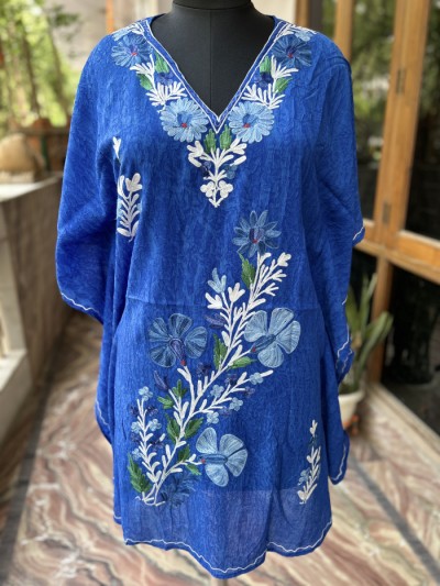 Step into effortless style with our Royal Blue Embroidered Cotton Kaftan, crafted to offer both comfort and elegance. Made from premium 180 GSM pure cotton, this biowashed, lint-free fabric ensures breathability and softness all day long. Featuring vibrant floral embroidery on the front and neckline, this half-sleeve kaftan is ideal for casual outings, lounging, or beachwear. The round neck and regular fit suit all body types, making it a must-have in your summer wardrobe. Whether you're dressing up for a relaxed evening or seeking a breezy outfit for a sunny day, this kaftan blends ethnic charm with modern comfort seamlessly.