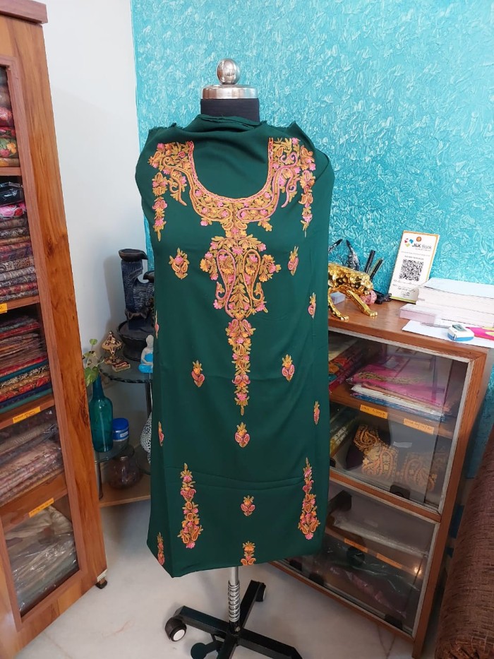 Unstitched Handwork Kashmiri Aari Suit - Forest Green Splendor