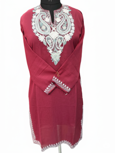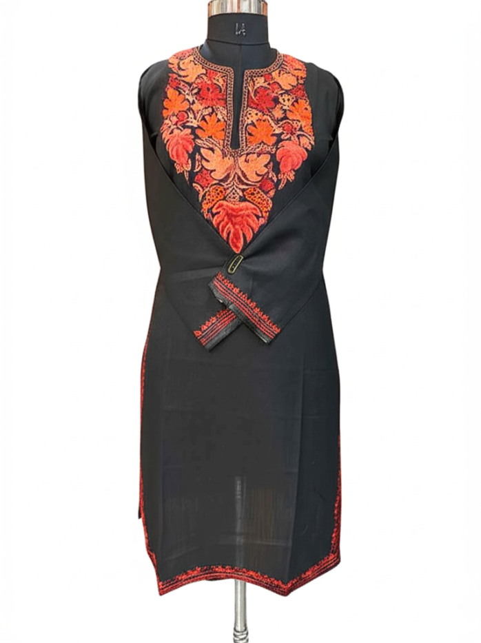 Redefine your style with our sophisticated Kashmiri Aari Embroidered Black Cotton Kurta. This captivating kurta is a masterpiece of traditional Kashmiri Aari work, boasting vibrant and bold floral and leaf motifs that stand out beautifully against the classic black cotton fabric. Designed for comfort and elegance, it's made from premium, breathable cotton, ensuring a delightful feel all day long. The intricate embroidery adorning the neckline, cuffs, and hem adds a touch of artisanal charm, making it a perfect choice for those who appreciate unique ethnic fashion. Elevate your everyday look or dress it up for an evening out.