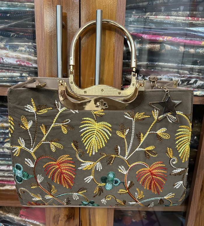 Ethnic Embroidered Handbag with Metallic Handle