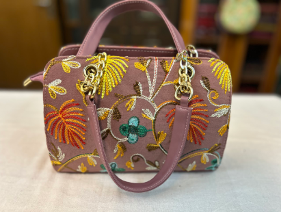 Carry a piece of Kashmir’s artistry with this beautifully embroidered handbag. The bag showcases traditional Aari work, done intricately by skilled artisans, making it both stylish and unique. The compact yet spacious design allows you to carry essentials with ease while adding a touch of heritage to your look.
