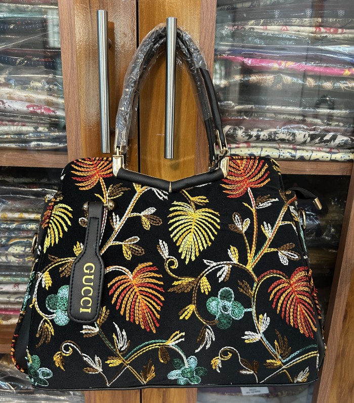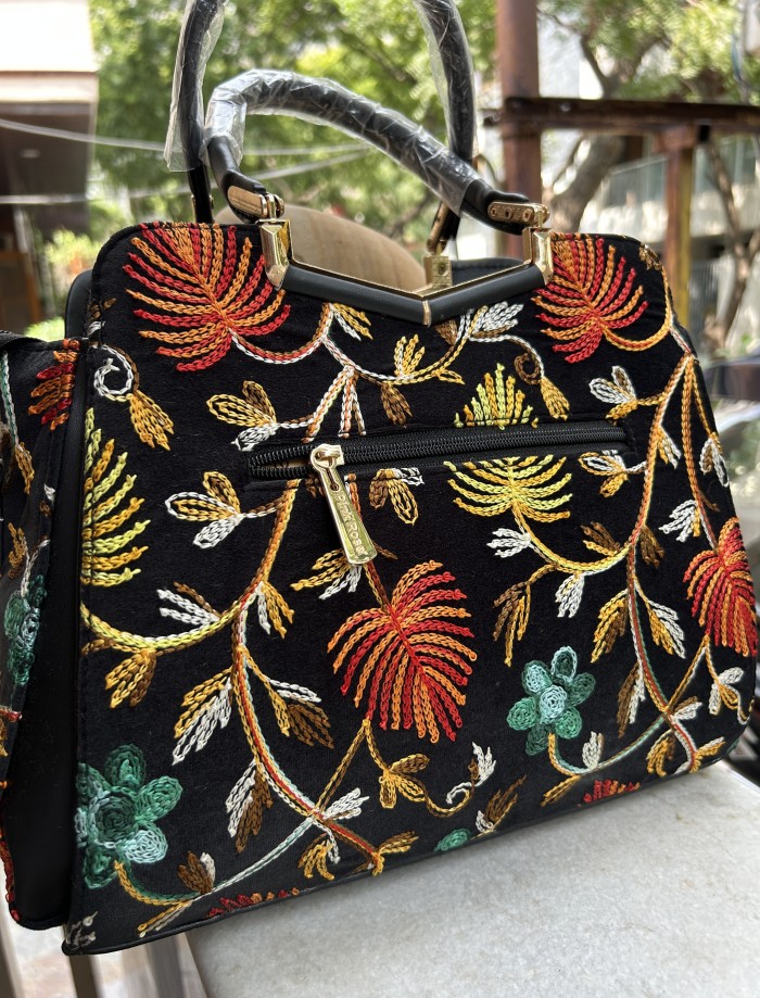 | Artisanal Embroidery : | Features rich, multicolor threadwork in a beautiful nature-inspired pattern (leaves and flowers), giving it a unique, artisanal look. |