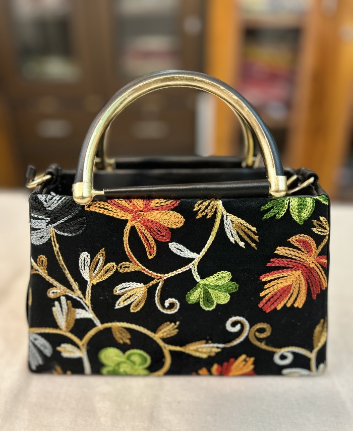 Mini Embroidered Box Handbag with Top Handle