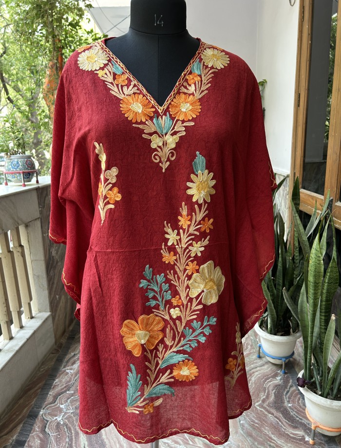 Red Kaftan with Orange & yellow Floral Embroidery | Elegant Summer Style