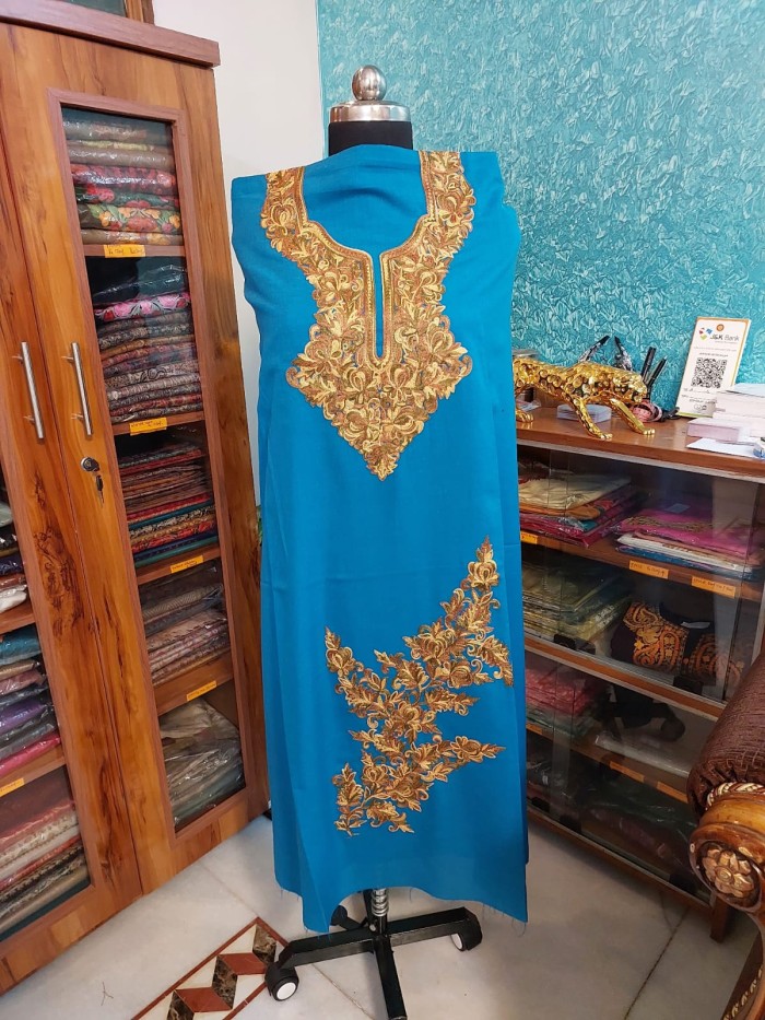| Authentic Kashmiri Artistry : | Showcases rich traditional Kashmiri hand embroidery with intricate detail. |